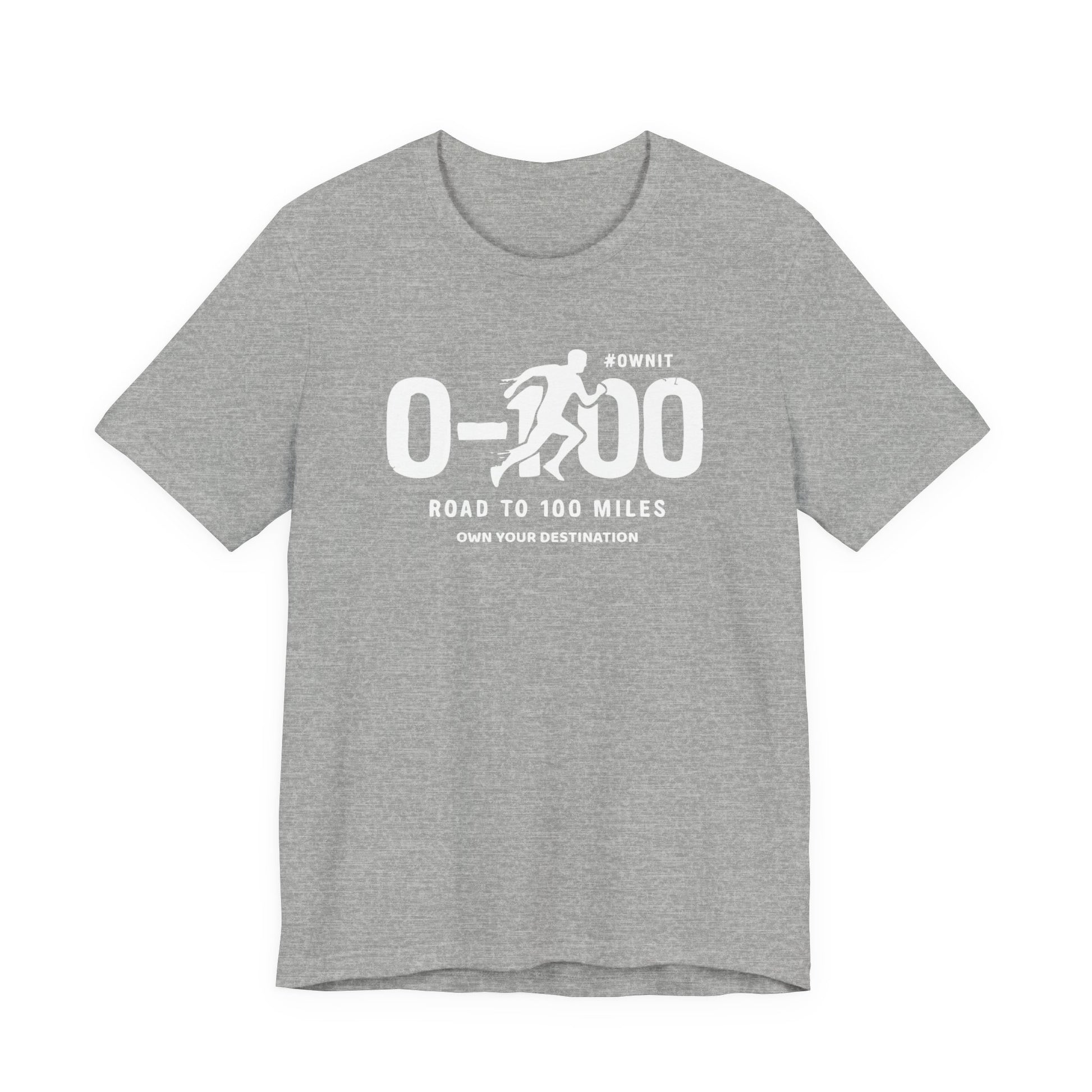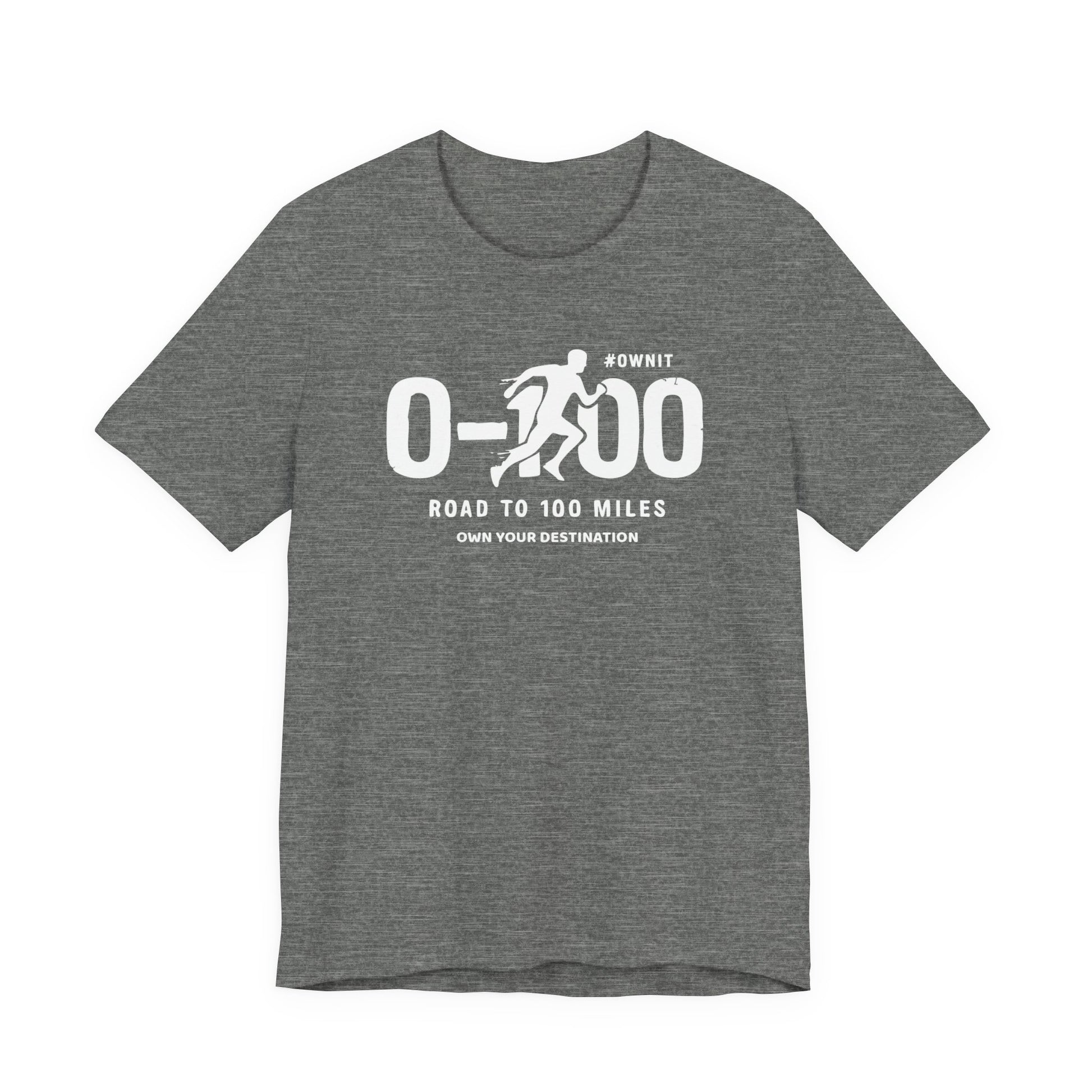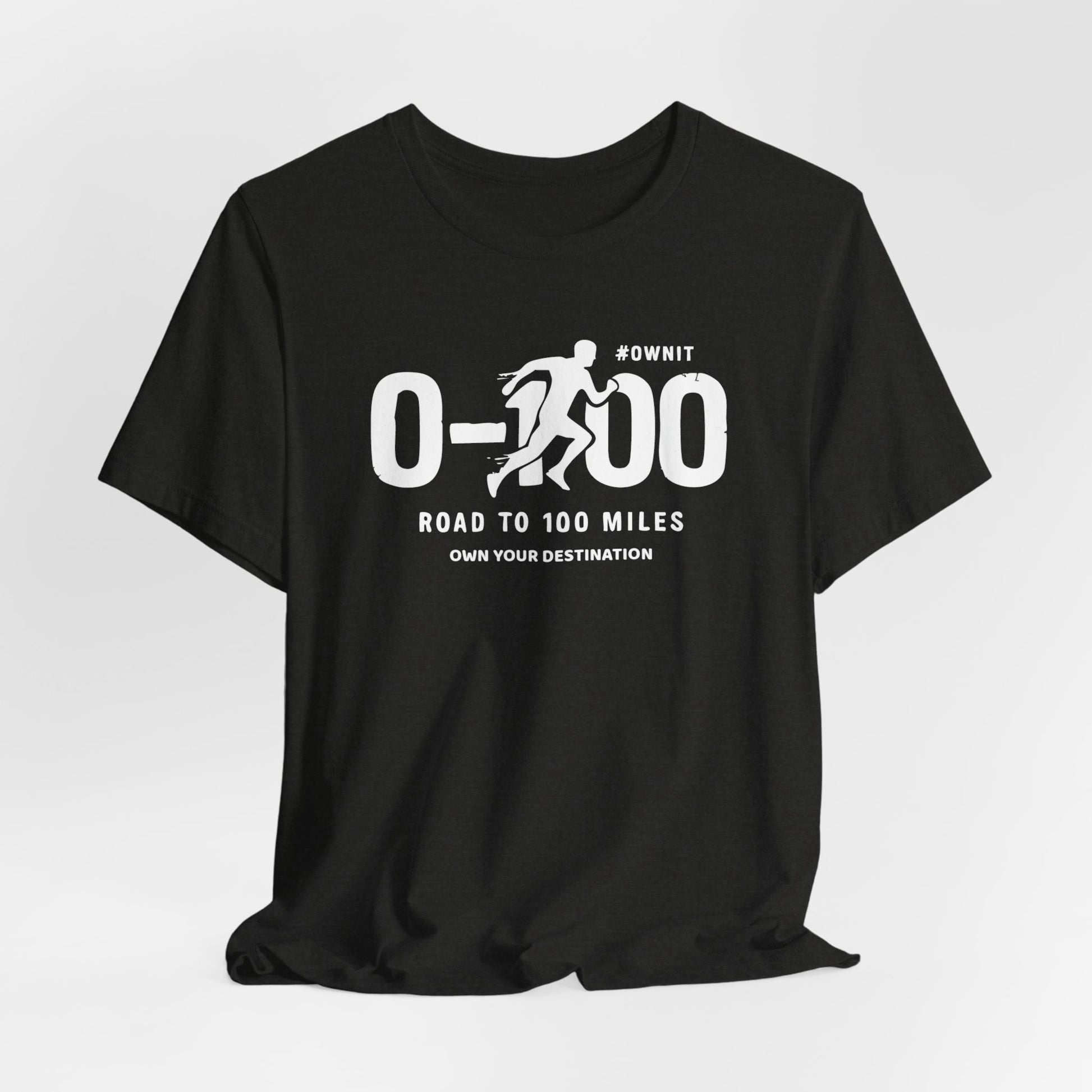 A rugged, distressed tee built for runners and grinders who push past limits — finished with #ownit and road to 100 milesas a badge of honor.