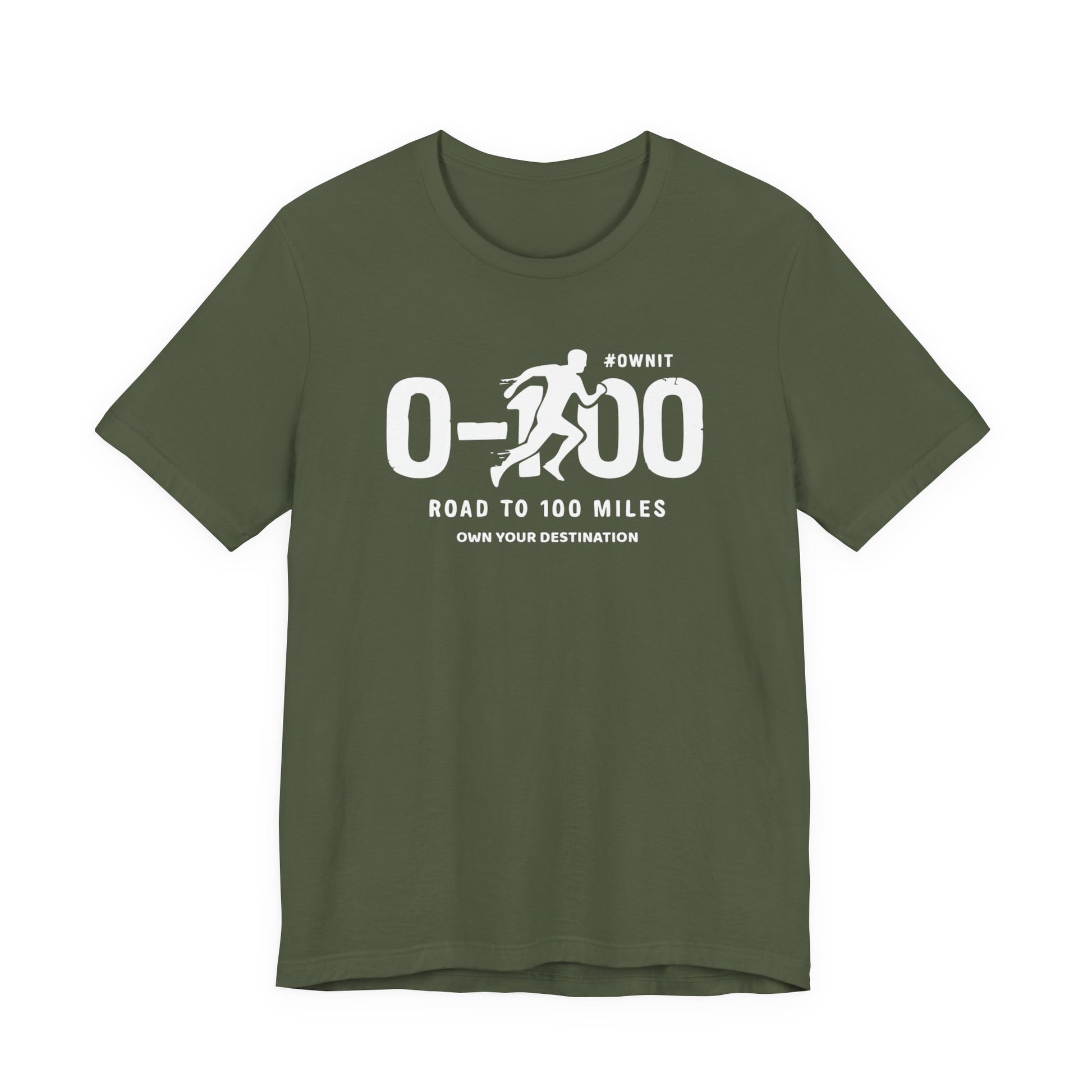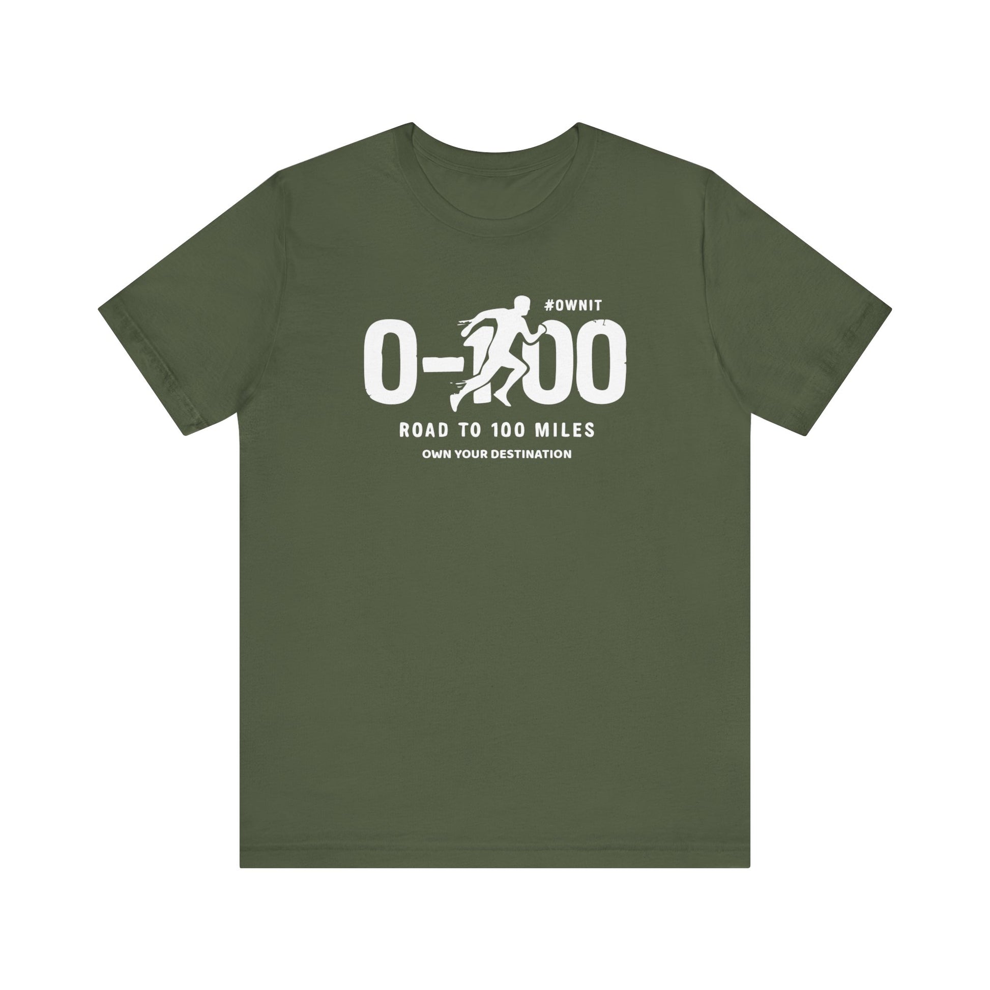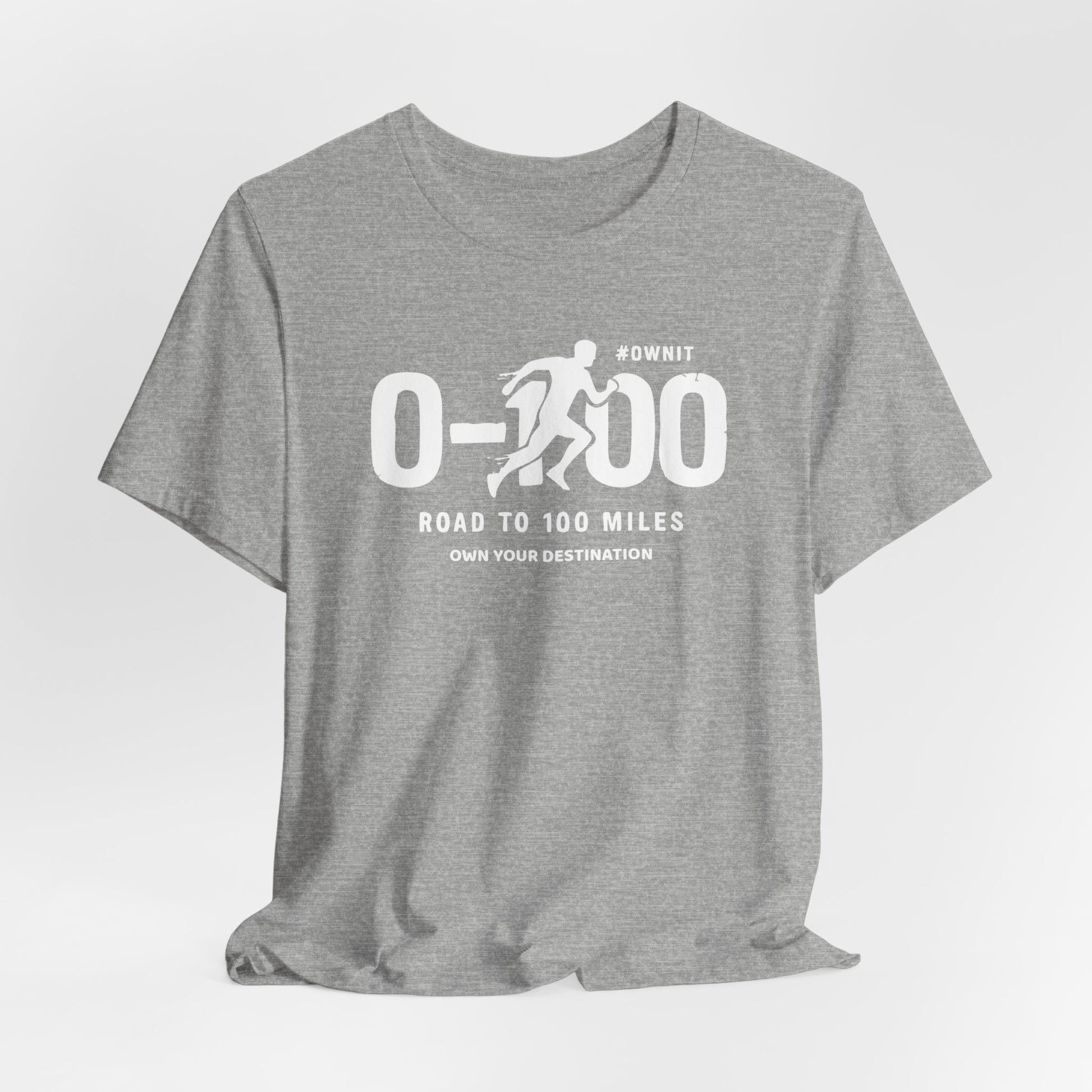 A rugged, distressed tee built for runners and grinders who push past limits — finished with #ownit and road to 100 milesas a badge of honor.